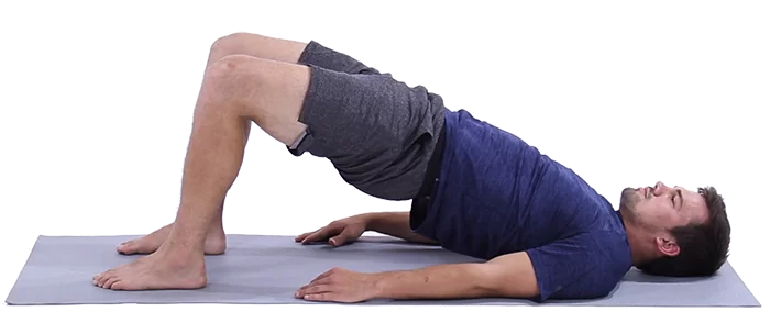 - Lift your hips towards the ceiling, squeezing your glutes at the top.